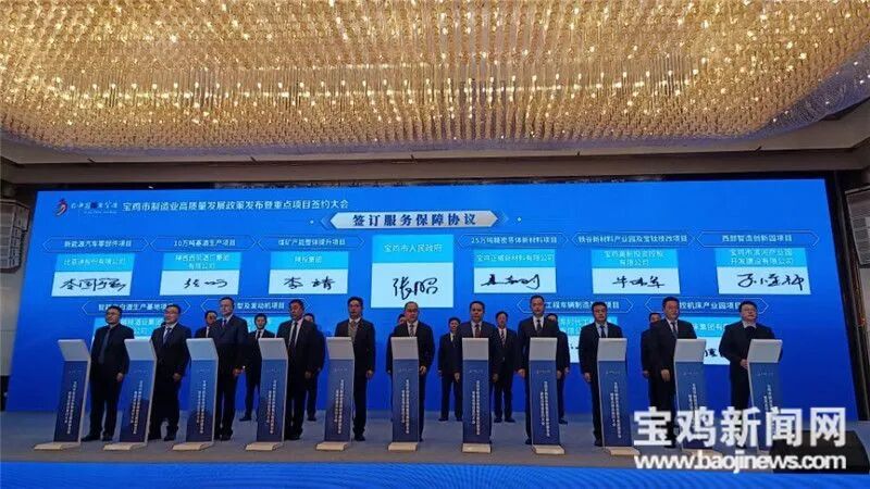 1月9日下午,宝鸡市制造业高质量发展政策发布暨重点项目签约大会在西安举行,发布了宝鸡市支持制造业高质量发展“1+5+N”系列政策。副省长叶牛平,宝鸡市委书记杨广亭、市长王勇、市人大常委会主任景耀平、市政协主席刘荣贤、市委副书记段小龙参加。 为抢抓发展机遇,强化产业支撑,当好全省制造业高质量发展排头兵,宝鸡市立足工业发展基础及企业需求,在对原有工业发展政策措施进行整合延续的基础上,推出了一系列创新性更强、含金量更高的政策措施,积极构建宝鸡市制造业高质量发展“1+5+N”政策体系。“1”即《宝鸡市坚定不移做强工业行动方案》;“5”即《宝鸡市促进制造业高质量发展若干政策》,包括科技创新、人才引育、企业培育、品牌建设、金融支持5个方面的政策措施;“N”即全市13个重点产业链提升三年行动计划。同时明确从今年起市财政每年安排5亿元工业发展专项资金,用于政策兑现和重点事项支持。 叶牛平指出 宝鸡是我省制造业重要基地,工业基础雄厚,发展潜力巨大,希望以此次活动为契机,坚定不移做强工业,当好全省制造业高质量发展排头兵。 要加大招商引资力度,充分发挥好政府在工业发展中的引导作用,围绕优势产业,强化政策支持,招引一批真干实干的企业,推动宝鸡制造业高质量发展。 要全力支持企业发展,提高政策措施的精准性、匹配度,关注企业需求,帮助解决好企业落户园区、资本投入等问题,支持企业增资扩产。 要积极构建“亲”“清”政商关系,真心实意服务企业、帮助企业,助力企业发展壮大。 杨广亭表示 坚定不移做强工业,推进制造业高质量发展是我市贯彻落实党的二十大精神,推进新型工业化的具体实践。我市将坚持以党的二十大精神为指引,深入学习贯彻习近平总书记来陕考察重要讲话重要指示,持续强化宝鸡制造业高质量发展排头兵和副中心城市地位,加快构建以先进制造业为引领的现代化产业体系,聚力建设全国高端装备制造基地。 王勇在致辞时表示 宝鸡将始终以实业报国、制造强国为己任,把大力发展先进制造业作为第一要务,认真兑现落实当天发布的各项政策,努力当好服务企业发展的贴心店小二和真诚合伙人,着力营造企业最受重视、企业家最受尊重的浓厚氛围,政企联手、齐心协力,早日把宝鸡打造成为更具实力的全国先进制造业高地。 当天,宝鸡市人民政府与比亚迪新能源汽车零部件项目、西凤酒10万吨基酒生产项目等十大重点工业项目集中签订服务保障协议;相关县区与香港圣元集团、杭州汉基建材公司、广西永祥新能源车辆等企业签约招商引资项目20个,总投资金额达210.6亿元,涉及钛及新材料、汽车及零部件、优势装备制造、食品工业、能源化工、航空航天等产业。 省政府副秘书长贾锋,省科技厅、工信厅、国资委、发改委、商务厅等省级部门领导,宝鸡市领导王安中、边雅妮、佘俊臣、张昭参加。