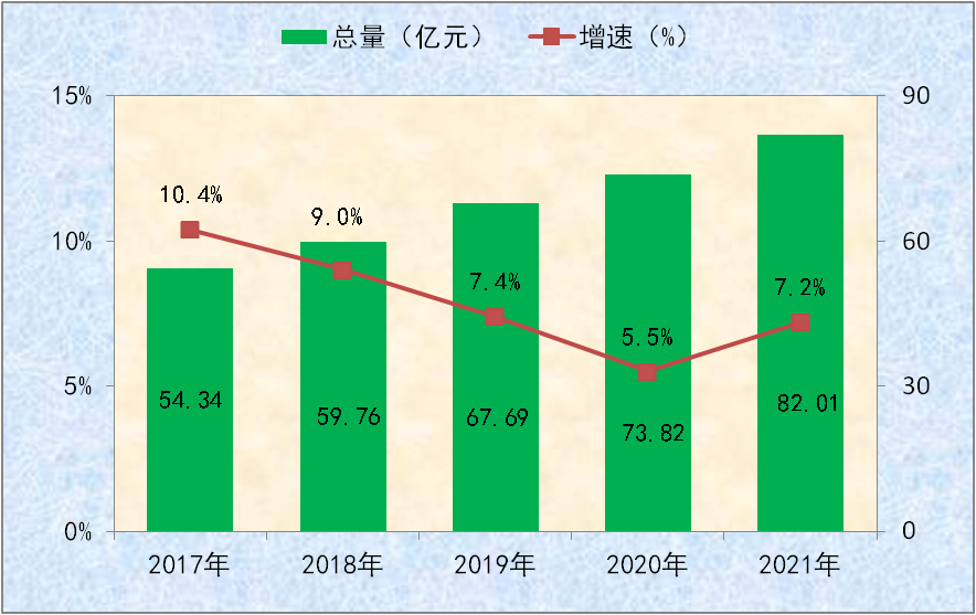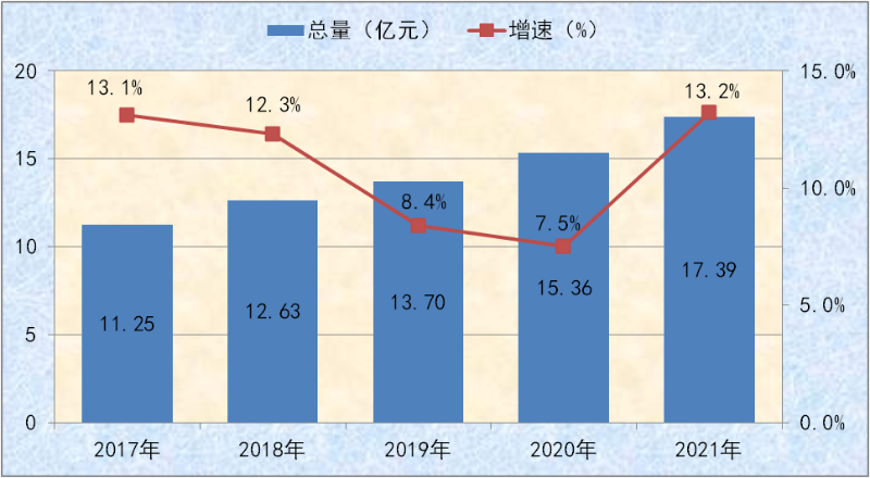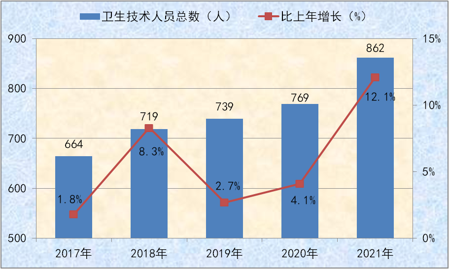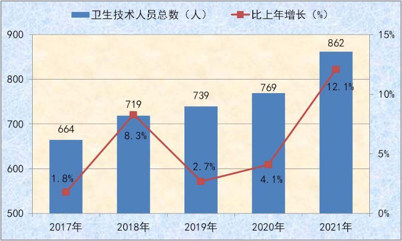 图十三:2017-2021年卫生技术人员总量及增速