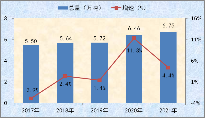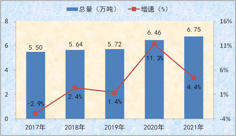 2021年全县粮食播种面积28万亩,比上年增长2.6%,其中夏粮14.4万亩、秋粮13.6万亩。全年蔬菜种植面积5.89万亩,苹果、侧柏、松树等育苗面积1.21万亩。全年园林水果面积6.7万亩,其中苹果面积6.3万亩。(2017-2021年全县粮食产量及增速详见图七)