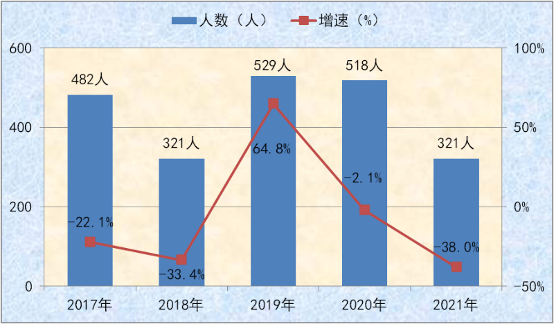 图十一:2017-2021年全县本科上线人数及增速