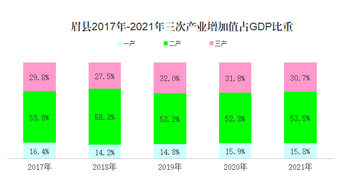 第一产业增加值占生产总值比重为15.8%,第二产业增加值占生产总值比重为53.5%,第三产业增加值占生产总值比重为30.7%。人均地区生产总值71331元。